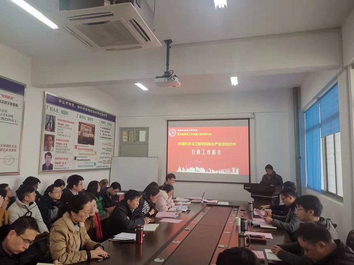 12月22日下午,环境学院在学院会议室召开第三届教职工大会暨工会会员大会。院长严金龙作工作报告,分工会主席周政作分工会工作报告,大会选举产生了学校第五届教职工代表大会暨工会会员代表大会代表、环境学院教职工大会执行委员会和分工会委员会委员,大会由学院党总支书记陈阳主持。