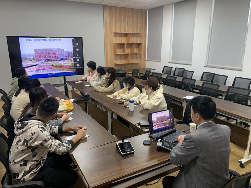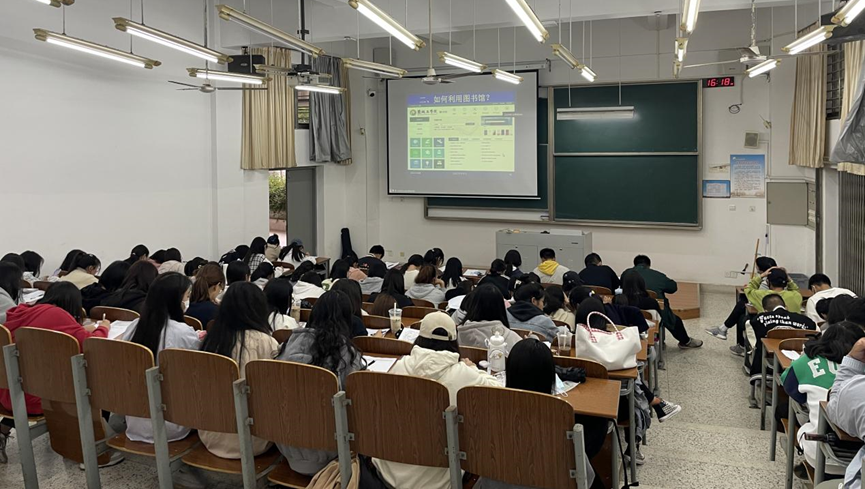 秦殿启介绍了学校图书馆历史、馆藏资源、馆舍分布、图书馆开放时间、使用导航、文明守则和借阅规则等。他讲解了书籍检索方法、图书借阅流程、“超星移动图书馆”手机客户端。他强调,安全信息素养与健康信息素养不可或缺,同学们应当学会辨别真伪,在众多的资源中,养成良好的阅读素养。
