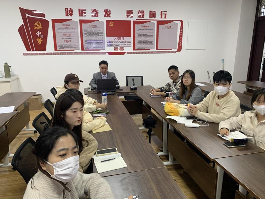施鲁莎从分享党的二十大报告的学习体会导入,讲解中国共产党的性质、指导思想、宗旨、入党条件以及贝博发展党员的基本条件、入党申请书和思想汇报的撰写格式。