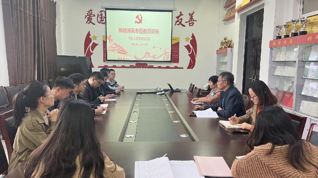 11月9日,在机械馆A323会议室,汽车工程学院邀请学院原党总支书记朱龙英为教师作师德师风专题教育讲座。讲座由学院党总支书记杨军主持。