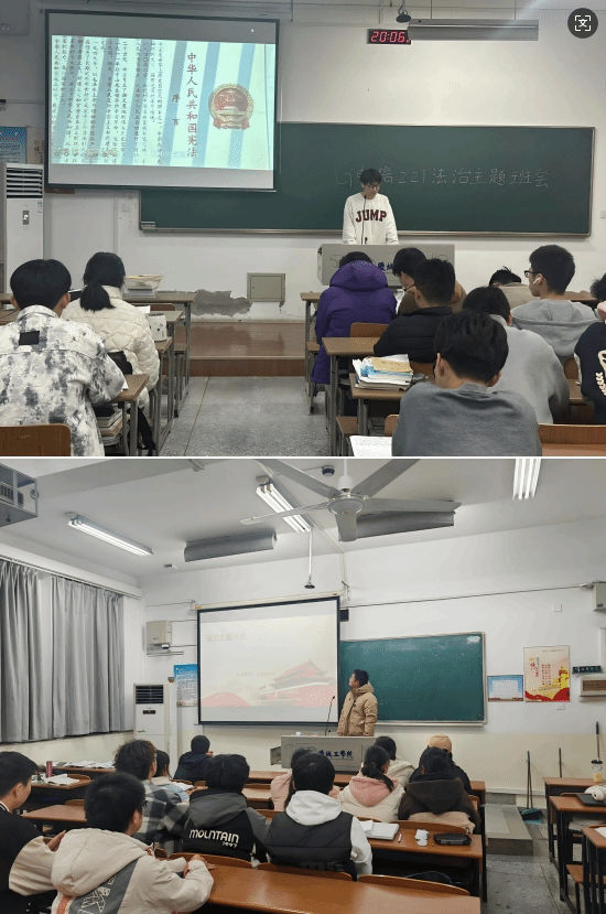 12月5日,学院组织大一开展法治主题班会,要求青年学生不仅要深刻理解宪法的核心要义,更要将其内化于心、外化于行。通过此次班会,进一步提高学生的法治意识,强化学生的法治观念。
