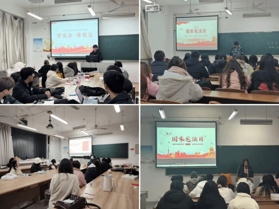 12月1日至3日,学院举办了“宪法宣传进班级”活动。围绕“大力弘扬宪法精神,推动进一步全面深化改革”这一主题,各班级由团支书担任宪法宣传主讲人,向同学们阐释宪法的基本内容及其时代价值。在宣讲过程中,同学们学习了宪法的基本原则、发展历程和主要内容,了解宪法在对于保障公民权利、维护社会稳定、推动国家发展方面发挥的重要作用,切实增强了同学们的法律意识,提高普法教育的参与度与实效性。