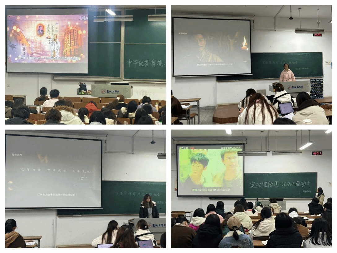 学院组织各班级召开了法治主题班会,组织全体学生收看了“宪法的精神法治的力量——2024 年度法治人物”专题节目、中华优秀传统法律文化系列短视频及宪法相关的影视作品,并参加了宪法知识竞答等活动。