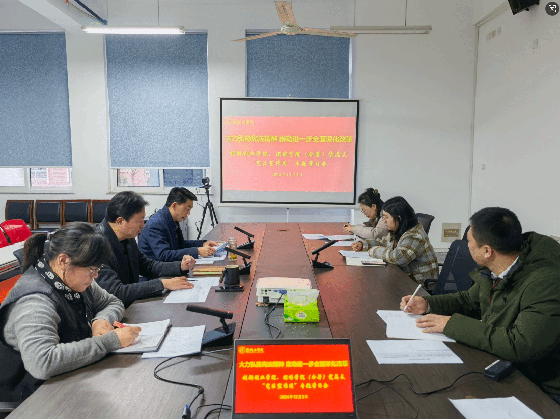 为大力弘扬宪法精神,传播宪法理念,推动进一步全面深化改革,根据省委宣传部、省司法厅、市委宣传部、市法宣办及校宣传部相关通知精神,12月2日下午,在南校区行政楼328会议室,教务处开展2024年度“宪法宣传周”专题学习活动。