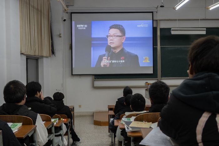 12月4日晚,学院在北校区五四报告厅,组织高年级学生观看“宪法的精神,法治的力量——2024年度法治人物”宣传活动专题节目直播,通过观看直播,有效提高了同学们宪法知识的储备量,同时对宪法精神也有了更加深入的领会。12月5日,学院组织大一年级学生利用课余时间,观看了专题节目的回放,并进行了小组讨论,分享各自的理解和感悟。同学们纷纷表示要向法治人物学习,尊崇宪法、学习宪法、遵守宪法、维护宪法、运用宪法,成为宪法坚定不移捍卫者践行者。