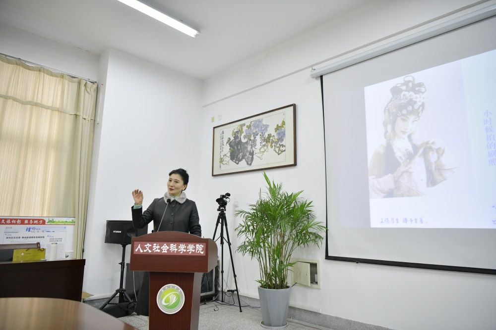 近年来,人文社会科学学院大力推动中华优秀传统戏曲文化的校园传承与发展,陆续在《古代文学》《美学概论》《走进盐城黄海湿地》等课堂实践中,巧植戏曲之根,在课程教改微观层面,拓宽教学边界,畅通美育路径。同时,人文学院“中华美育研究团队”面向国际,积极探索传统戏曲的跨文化实践研究。主持校级美育课程专项《走进中国戏曲之美》的赵晶晶老师认为,陈澄老师主演的淮剧《小镇》改编自马克·吐温的中篇小说《败坏了哈德莱堡的人》,这不仅是中西文艺碰撞的一次尝试,也为湿地世遗大地上的观众在舞台上搭建起了一座中西文明交流互鉴的桥梁。
