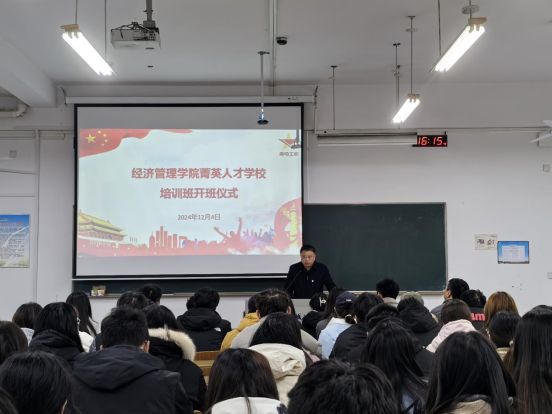 12月4日,经济管理学院菁英人才学校培训班开班仪式在南校区博学楼B404举行。学院党委副书记周旺基出席并作动员讲话,学院专职辅导员张鸿凯以及菁英人才学校学员参加。学院团委书记朱碧玲主持活动。