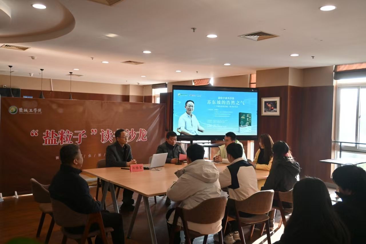 12月17日下午,图书馆“盐粒子”读书沙龙第四期在希望大道校区图书馆二楼咖啡厅成功举办。江苏省书香全民阅读基金会理事长、江苏省全民阅读促进会常务理事汪维宏,携带新作《千载浩然苏东坡》做客读书沙龙,引领同学们走进苏东坡的浩然世界,品读苏东坡的不一样人生。图书馆馆长李明主持,70余名学生读者参加。