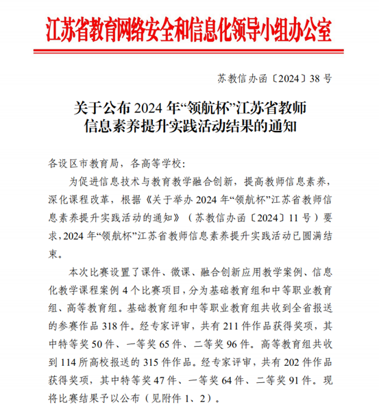 近日,2024年“领航杯”系列比赛结果公布。贝博马克思主义学院曹爱凤、机械工程学院邱亚兰两位教师荣获江苏省教师信息素养提升实践活动二等奖。贝博学生在江苏省大学生数字素养与技能大赛中共获得特等奖1项,一等奖1项,二等奖4项。