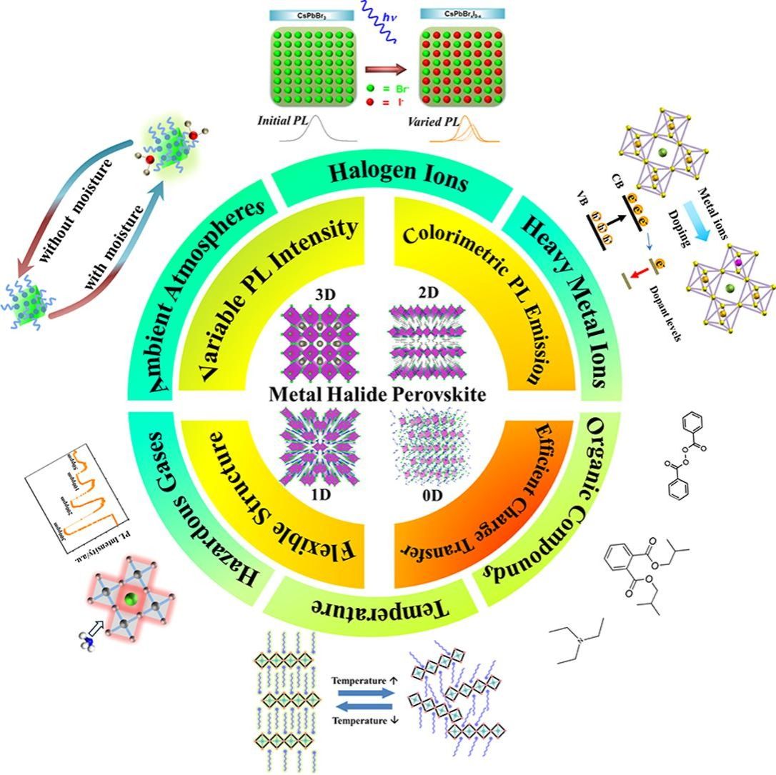 金属卤化物钙钛矿凭借其卓越的光物理特性,在太阳能电池、发光二极管、激光器和光催化剂等前沿科技领域的发展中占据了举足轻重的地位。然而其应用潜力远未被完全挖掘。作为荧光传感器,金属卤化物钙钛矿在化学分析和温度监测方面同样展现出了巨大的潜力,为多功能应用开辟了崭新的道路。荧光传感技术作为环境监测和化学分析的重要手段,对卤化物钙钛矿材料的深入研究提出了更为迫切的需求。