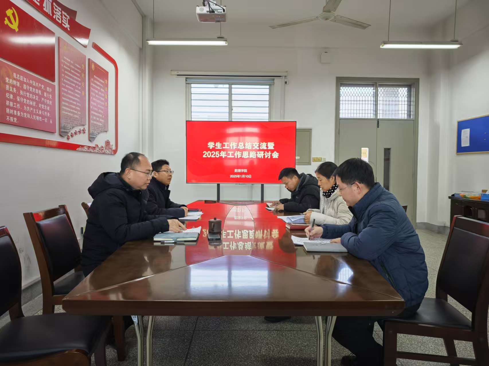 为进一步落实立德树人根本任务,全面提升学生思想政治教育工作队伍的综合素质和业务能力,明确2025年学生工作思路,1月10日下午,数理学院在博学楼B503会议室召开年度学生工作总结交流暨2025年工作思路研讨会。学院党总支副书记许众威、全体辅导员参加,学院党总支书记魏伟华出席并主持会议。