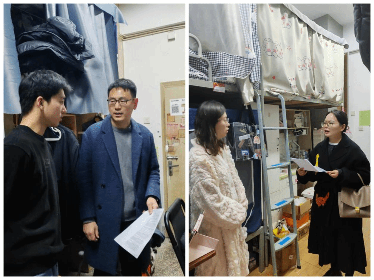 检查过程中,辅导员分别深入责任班级学生宿舍,了解学生们的学习、生活状况,重点排查学生宿舍内吸烟、使用违规电器、存放违禁物品等安全隐患,同时对宿舍矛盾、环境卫生等问题进行深入地了解和摸排。老师们与学生亲切交流,不仅认真倾听学生在新学期学习生活中的各类需求、意见和建议,还悉心提醒同学们要加强宿舍学风建设,严格遵守宿舍管理规定,时刻注意防火、防盗,做好宿舍卫生和个人卫生,共同营造安全、和谐、卫生的宿舍环境。