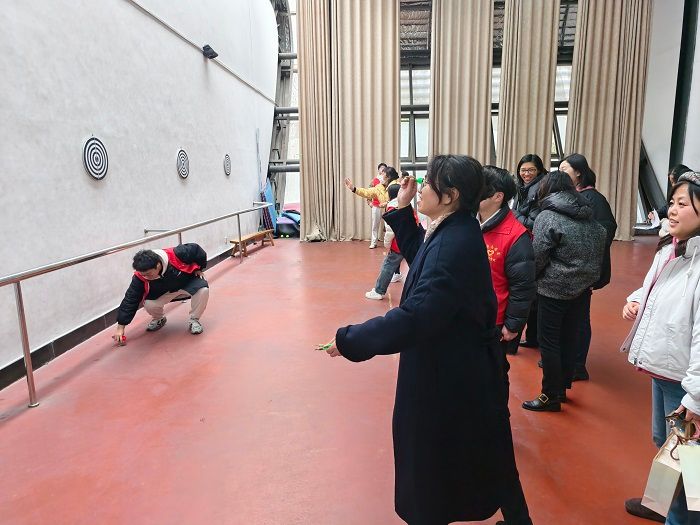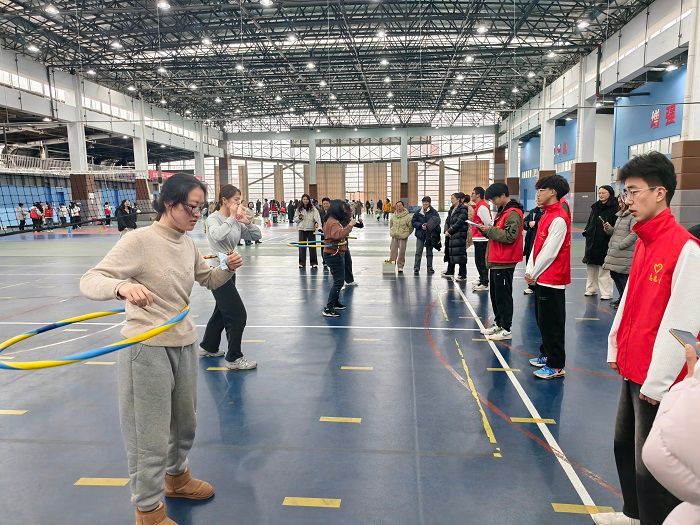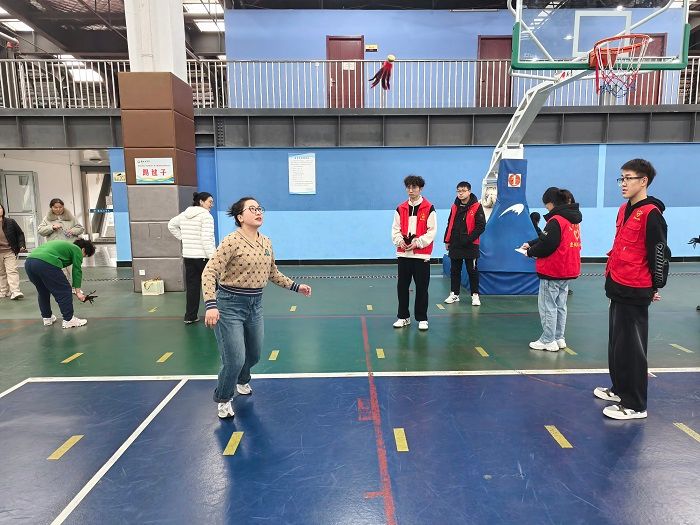 本届运动会延续“健康、欢乐、协作”的理念,设置呼啦圈、趣味平衡赛、趣味套圈、趣味射箭、跳绳、踢毽子等六大项目,既保留传统趣味性,又融入新颖创意。在“呼啦圈”赛场,选手们腰肢轻旋,彩圈翻飞,比拼耐力与节奏感;趣味平衡赛中,参赛者头顶书本快步疾走,既要保持平衡又需争分夺秒,场边观众笑声与加油声交织;趣味套圈项目成为全场焦点,五彩圆环划出优美弧线,精准命中目标时掌声雷动;趣味飞镖项目则展现了女教职工的飒爽英姿、专注神态令人赞叹;传统项目“跳绳”与“踢毽子”依然备受欢迎,单人竞速、现场气氛热烈,既有紧张角逐的激情,也有互相鼓励的温情,充分彰显了团结协作、健康向上的精神风貌。