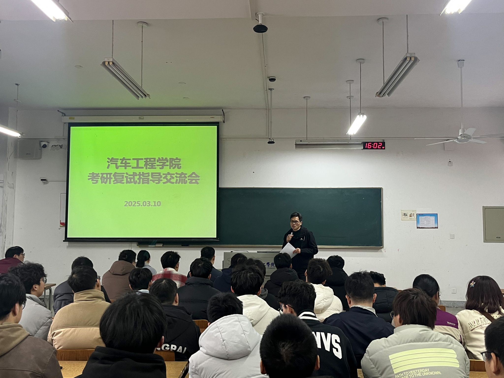 为进一步提升考研学子复试竞争力,帮助学生明确备考方向,掌握复试技巧,3月10日下午,汽车工程学院在南校区博学楼B104教室举办2025届学生考研复试指导交流会。学院党总支书记陈青主持会议,副院长熊新、副书记丁德惠出席并讲话,学工办、团委负责老师,毕业班辅导员及70余名考研学子参加。