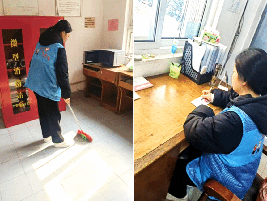 为减轻后勤人员工作压力,志愿者们深入学生宿舍区,协助宿管阿姨完成公共区域清扫、来访人员登记、通知张贴等工作。一名宿管阿姨感慨道:“这些孩子不怕脏累,帮忙打扫大院、搬运杂物,就像自家孩子一样贴心!”志愿者的点滴付出让宿舍管理更加高效,也拉近了学生与后勤工作人员的距离。