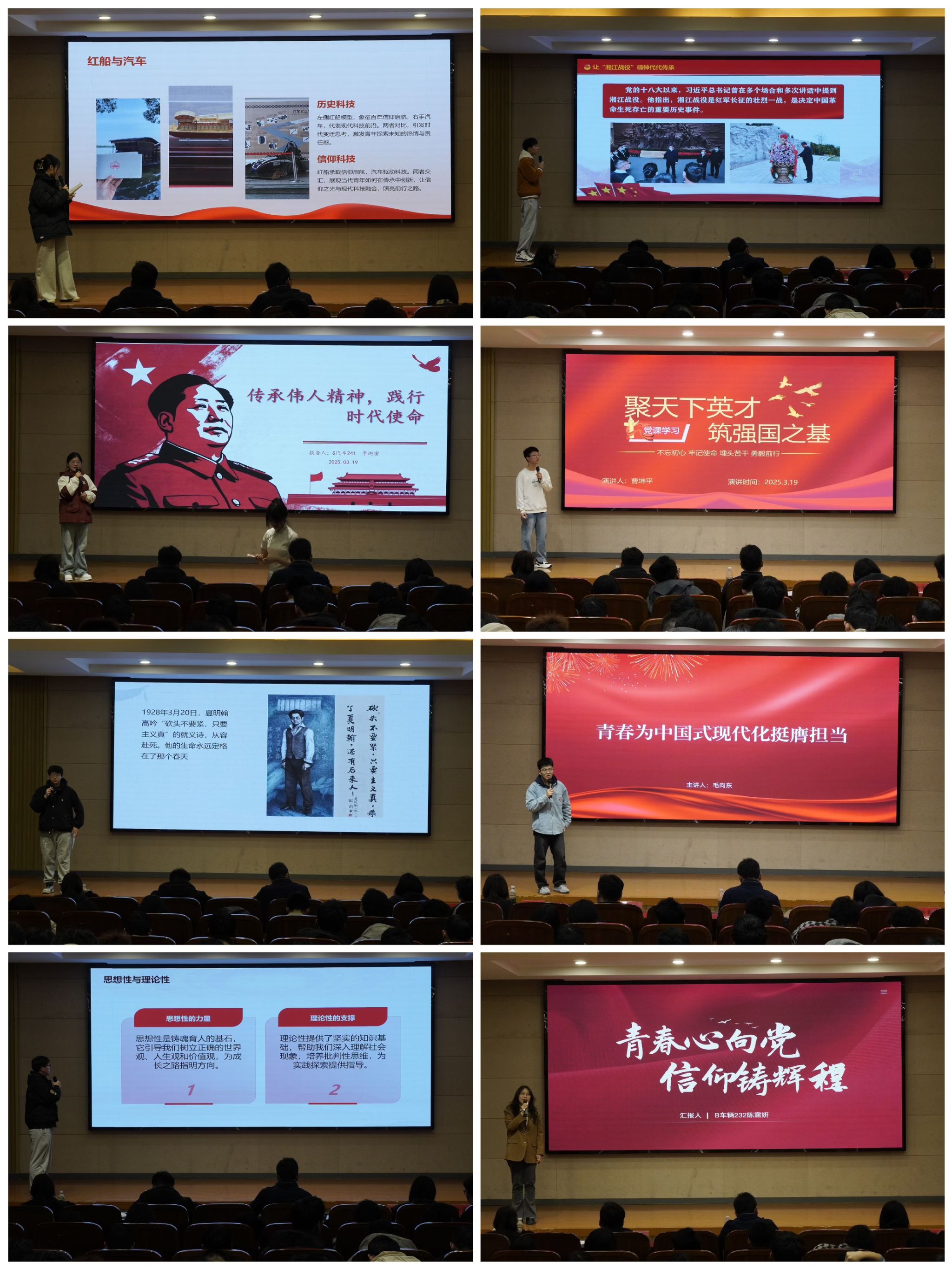 为进一步加强政治引领,用党的创新理论武装青年头脑,3月19日晚,汽车工程学院在南校区机械馆报告厅举办 “铸魂育人,思政先行 —— 团课我来讲” 院内选拔赛。汽车工程学院党总支副书记丁德惠、学工办主任孙进、团委副书记姚源、新生辅导员孙雅、第四届思政技能大比武省赛一等奖获得者徐宸阳同学担任评委,大一新生与菁英班学生代表等100余人参加本次活动。