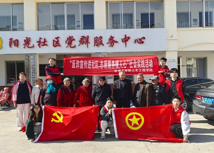 为推进广大青年志愿服务社区工作,进一步提高社区居民对电信网络诈骗的认知,增强人民群众风险防范意识和能力,3月22日,土木工程学院联合“砼心苑”一站式学生社区组织学院学生党员和青年志愿者前往盐城市经济开发区新城街道阳光社区开展“反诈宣传进社区,志愿服务暖人心”防范电信诈骗进社区活动。