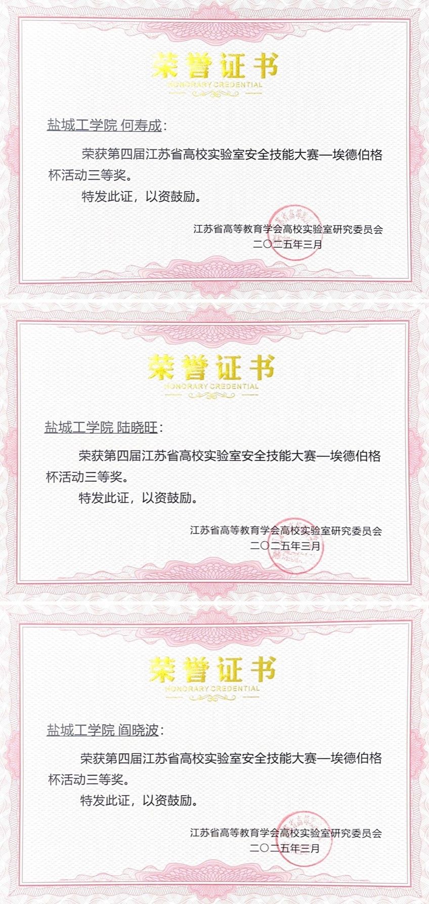 3月22日,由江苏省高校实验室研究会主办的第四届江苏省高校实验室安全技能大赛在常州大学科教城校区举行。材料学院何寿成、陆晓旺、阎晓波3位老师组成的参赛队伍荣获三等奖。