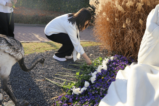 团课结束后,全体师生面向徐秀娟烈士雕像肃立默哀。四名学生代表朗诵了诗歌《一个真实的故事》;全体师生重温湿地保护志愿者誓词并依次向徐秀娟雕像敬献鲜花并鞠躬。最后,大家共同参观了徐秀娟烈士纪念馆,阅读了关于徐秀娟烈士的相关资料。