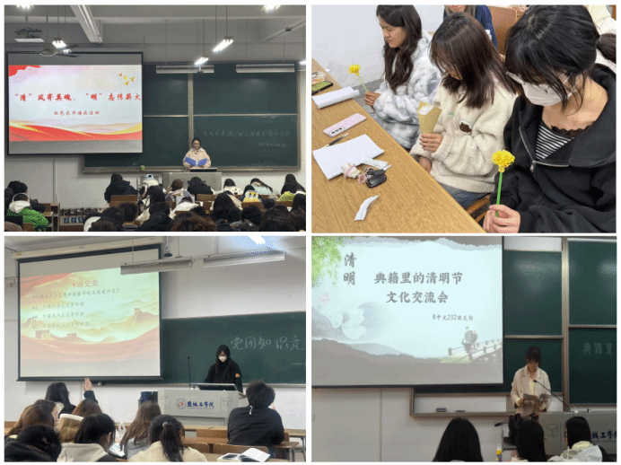 开展团日活动,重温历史悟初心。近日,人文学院各团支部在学院团委指导下开展了形式多样的清明主题团日活动。活动中,同学们以团课学习的形式深入学习习近平总书记关于缅怀先烈、崇尚英雄的系列重要论述,并通过红色家书诵读、“典籍里的清明节”文化交流会、团史知识竞答等多种形式的活动,不仅加深了对清明节文化内涵的理解,更深刻感受到英雄烈士们为实现中华民族伟大复兴不怕牺牲、顽强拼搏的精神。同学们还通过手工制作祭奠花束、参与网络文明祭扫等方式表达对革命先烈的哀悼和敬仰之情。