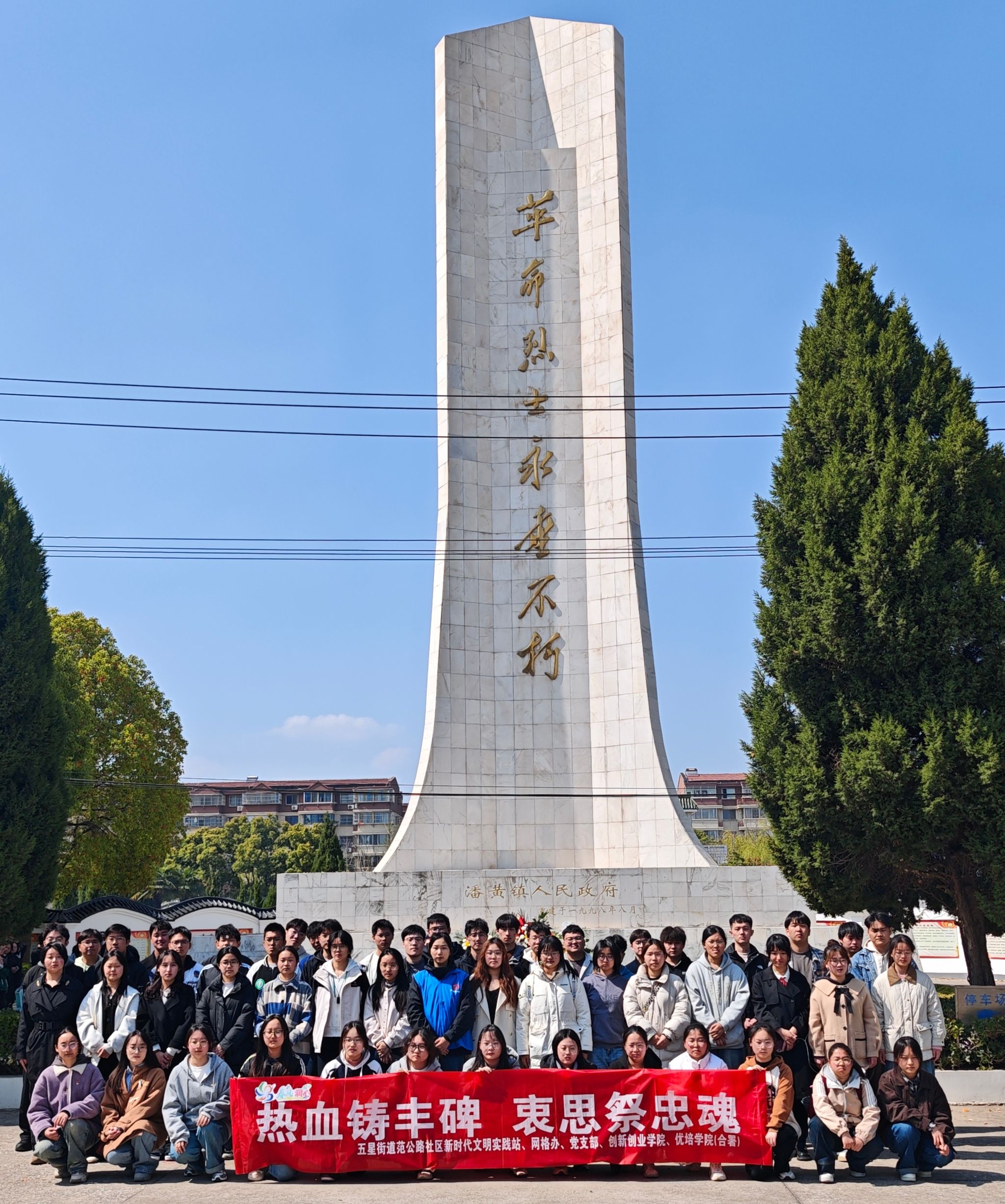 为赓续红色血脉,强化使命担当,4月2日下午,创新创业学院、优培学院(合署)联合范公路社区组织师生党员及青年马克思主义者培训班学员,赴潘黄烈士陵园开展“热血铸丰碑 哀思祭忠魂”主题党日活动。学院党总支副书记李凤芹带队,引导青年学子在缅怀英烈中厚植家国情怀,在躬身力行中传承红色基因。