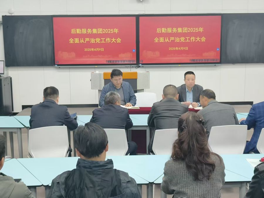 4月9日上午,在希望大道校区博学楼D314,后勤服务集团召开2025年全面从严治党工作大会。集团全体教职工参会,会议由集团党委书记李刚主持。