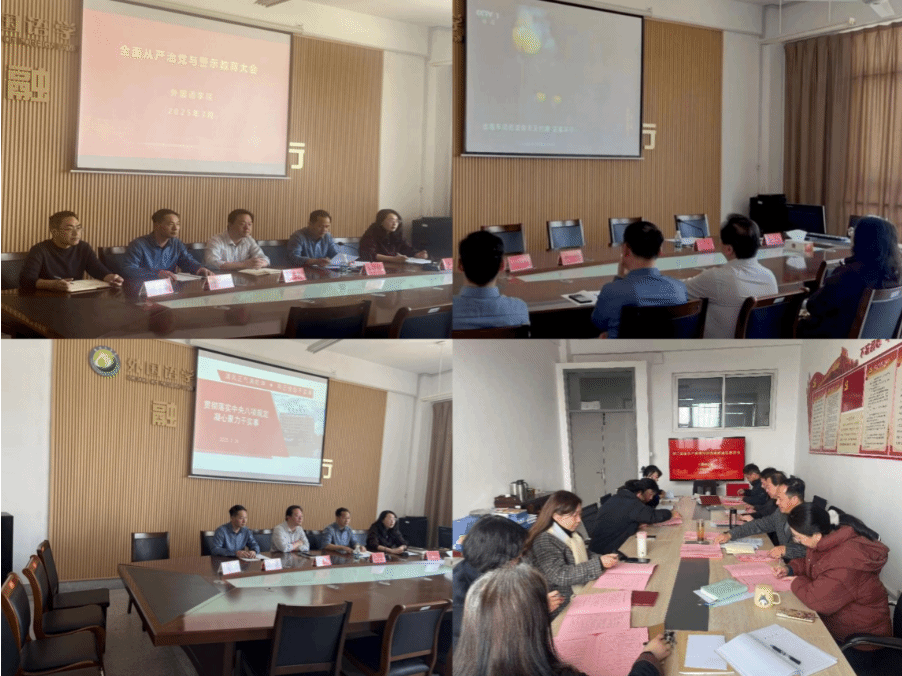 3日25下午,外国语学院在润美楼A404会议室召开2025年全面从严治党工作大会,学院党政班子成员、党支部书记、各科室、专业系负责人、全体教师党员参加会议,学院党总支书记刘正华主持会议。
