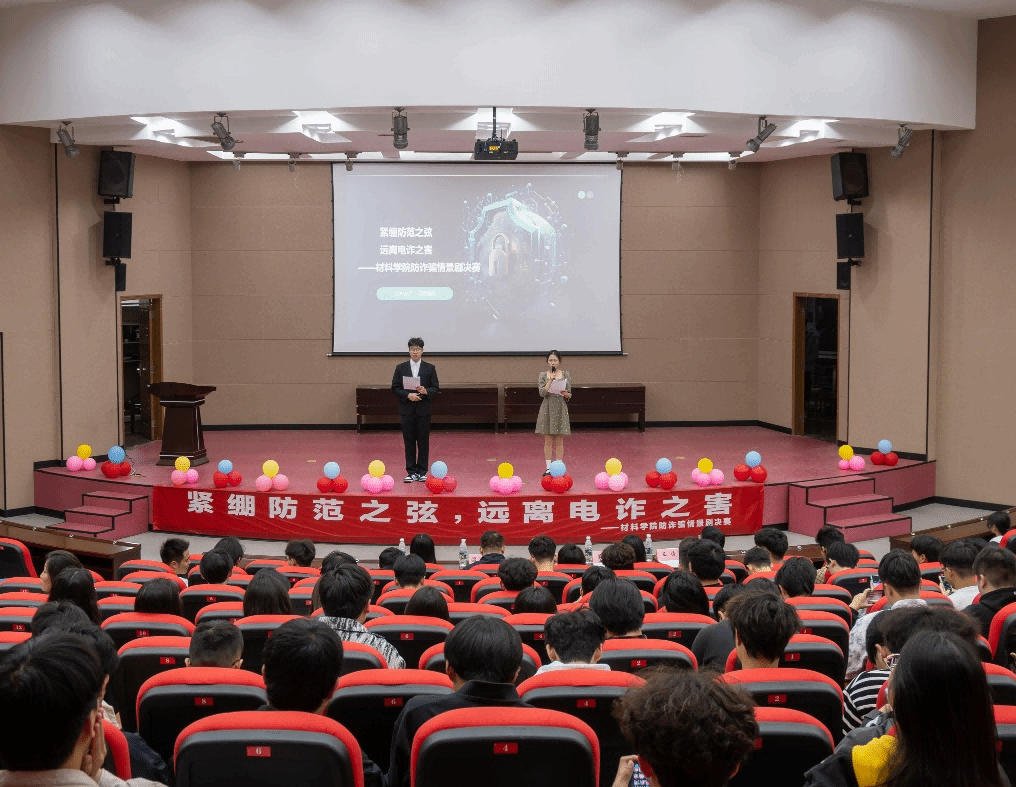为增强大学生的安全防范意识,增强识别和应对电信网络诈骗的能力,切实保障学生的财产安全。4月8日晚,材料学院在北校区五四报告厅举办“紧绷防范之弦,远离电诈之害”电信诈骗情景剧决赛。本次决赛特邀学生处副处长马晓英、研究生院副院长姜华,材料学院党委副书记温崇明、学工办主任王俊、团委副书记袁梅担任评委,2024级400余名学生现场观摩。