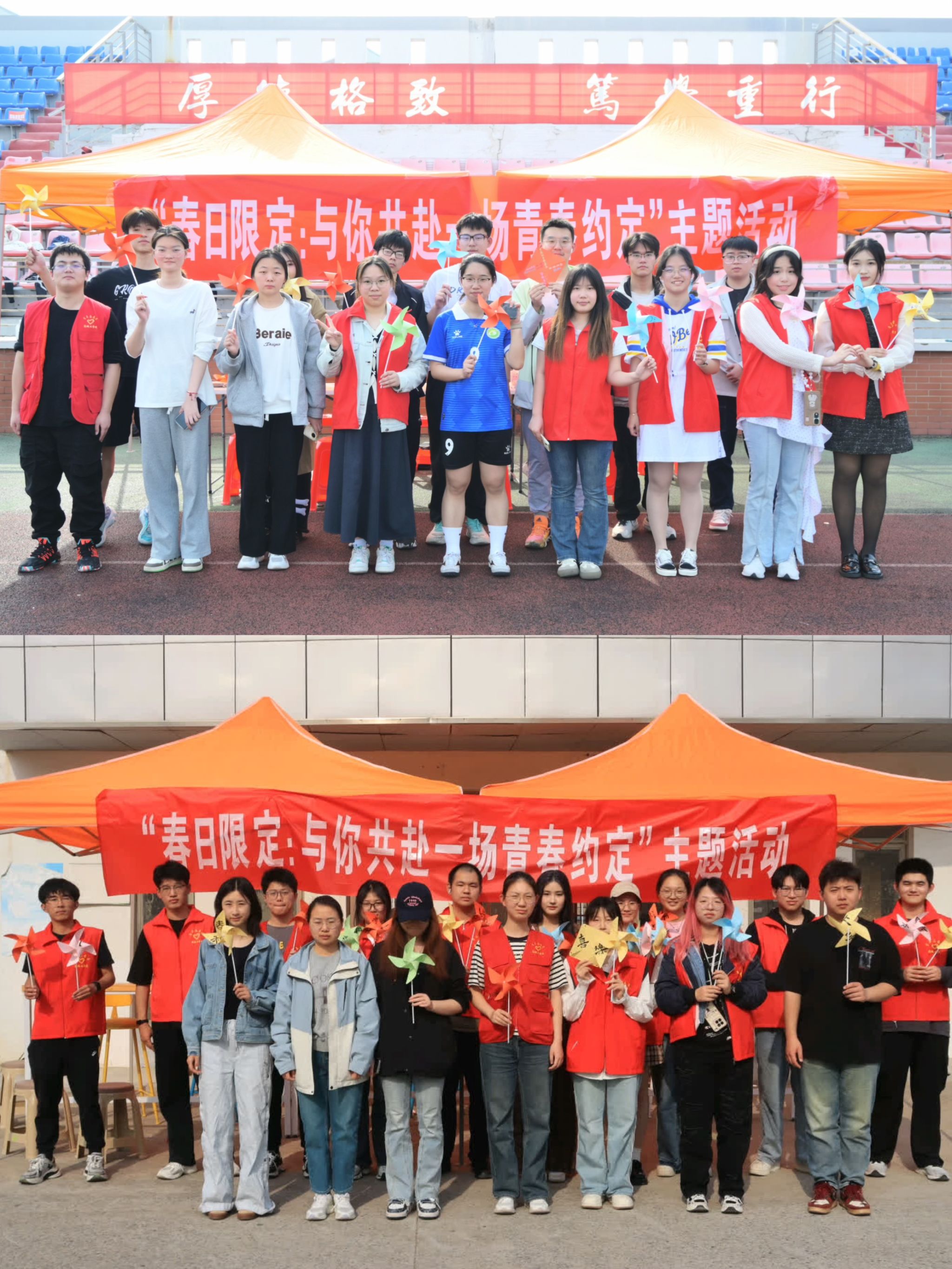 为激发青年学生的内在动力,展现青年学生积极向上的精神风貌,4月9日下午,校学生会联合校团委学生组织于南北校区同步开展“春日限定:与你共赴一场青春约定”主题系列活动,吸引了600余名同学参与。