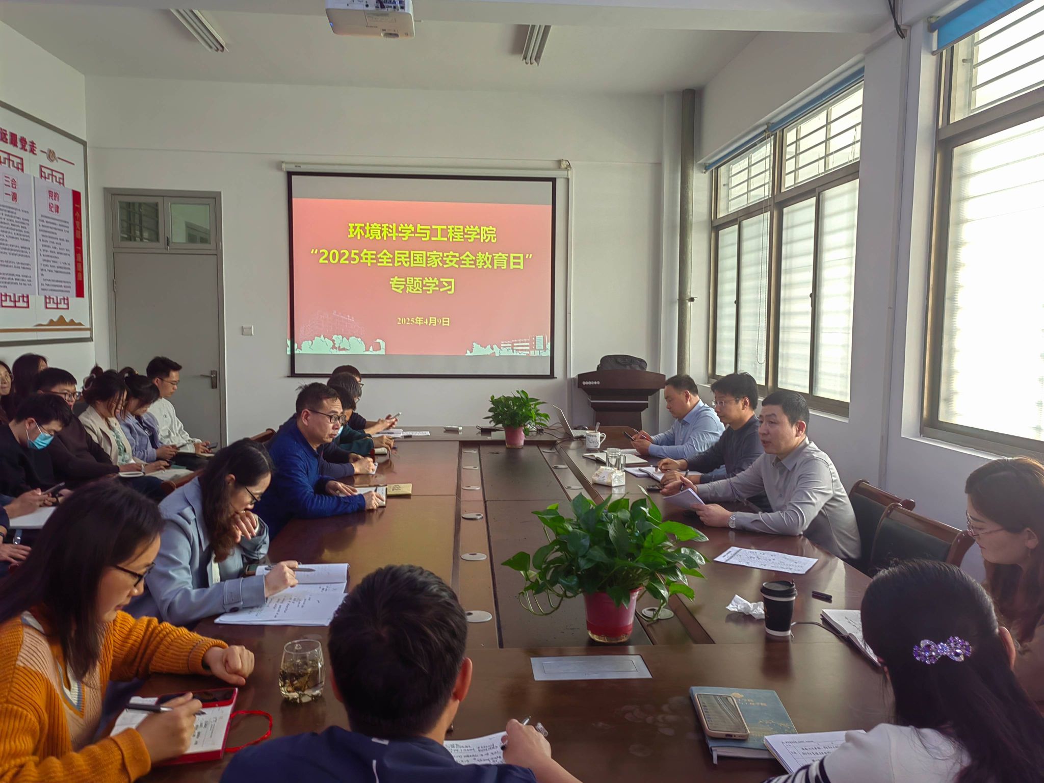 4月9日,环境学院举办国家安全教育专题学习会,会议由党总支书记孟鑫主持,学院全体教师参加。孟鑫指出,国家安全是民族复兴的根基,社会稳定是国家强盛的前提。在当前复杂多变的国际形势下,加强国家安全教育,提升师生的国家安全意识显得尤为重要。他强调,作为教师,我们不仅要传授知识,更要培养学生的国家安全观念,让他们认识到国家安全与个人息息相关,每个人都应承担起维护国家安全的责任。会后,全体参会教师共同观看国家安全警示教育片,并完成答题活动。