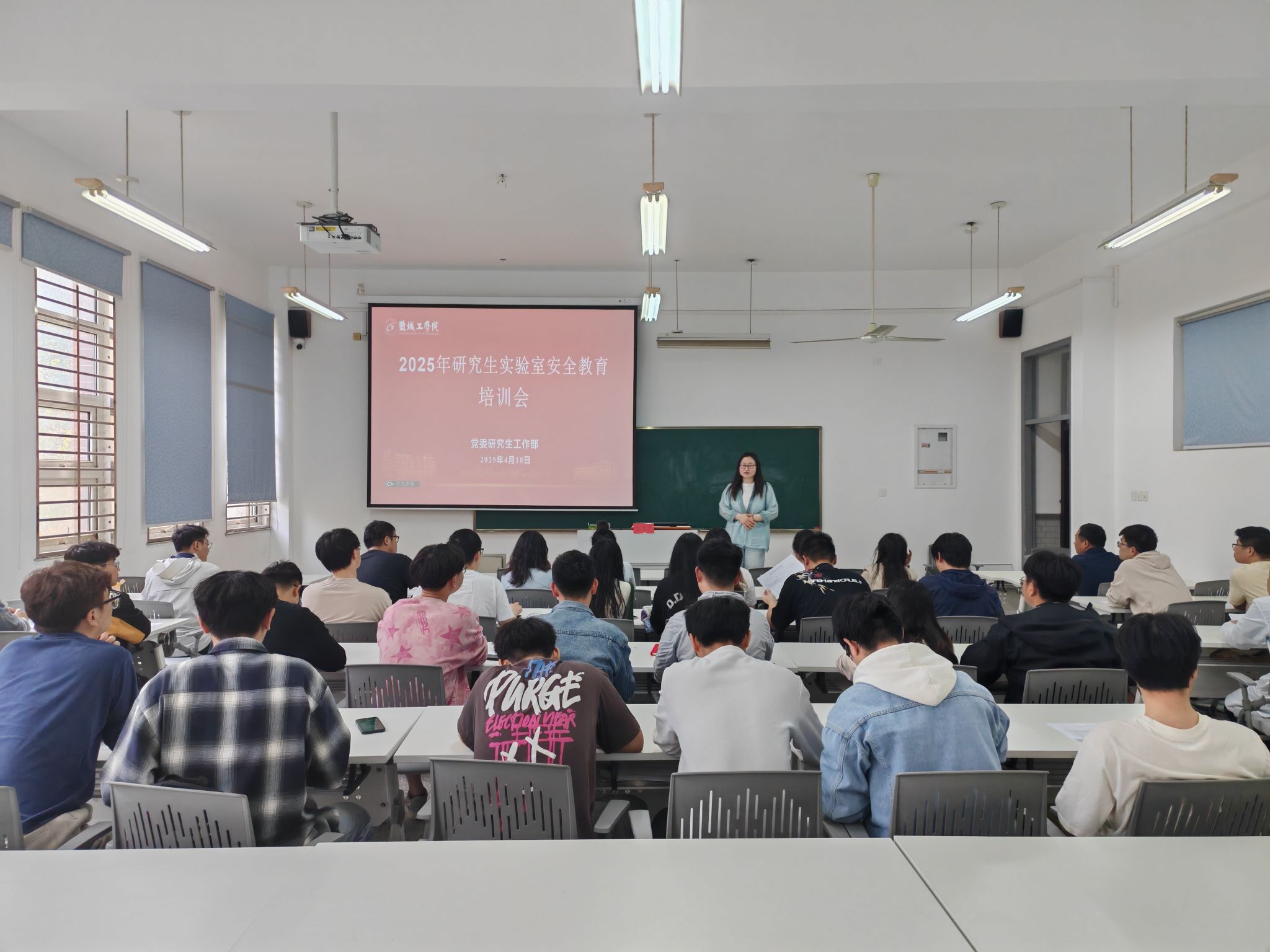 为强化研究生实验室安全意识,提升实验室隐患排查能力,4月18日下午,党委研工部在南校区仁和楼A103教室举办 2025 年研究生实验室安全教育培训会,邀请化学化工学院实验中心主任冒爱荣以“实验室隐患排查能力提升”为主题作专题报告。来自各学院的实验室安全排查志愿服务队骨干成员等40余人参会。会议由党委研工部副部长姜华主持。