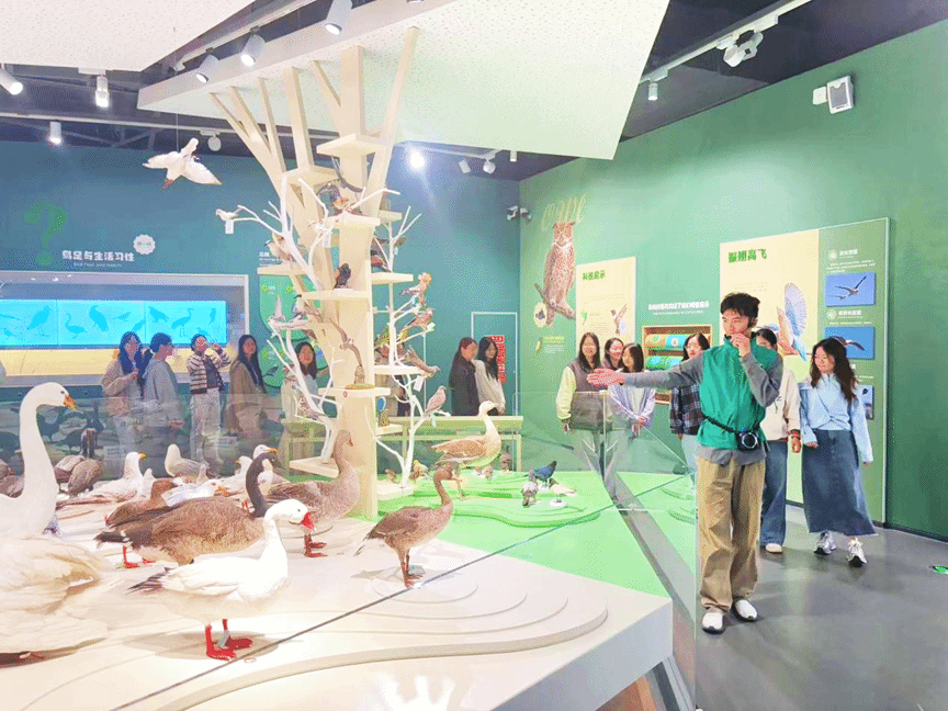 协会志愿者讲解员准备全面,认真负责,系统介绍了黄海湿地作为全球候鸟迁徙重要中转站的生态地位以及湿地的形成过程、生态功能。志愿者们通过生动的图文展示、珍稀鸟类标本及互动影像资料,让参观者们了解到震旦鸦雀、勺嘴鹬等珍稀鸟类在盐城湿地栖息繁衍的故事,深刻认识到湿地保护对维持生物多样性的关键作用。志愿者还结合盐城“世界自然遗产”的生态价值,讲解鸟类迁徙路线、栖息地修复工程等知识,激发了参观者们用科学思维关注生态问题的热情。