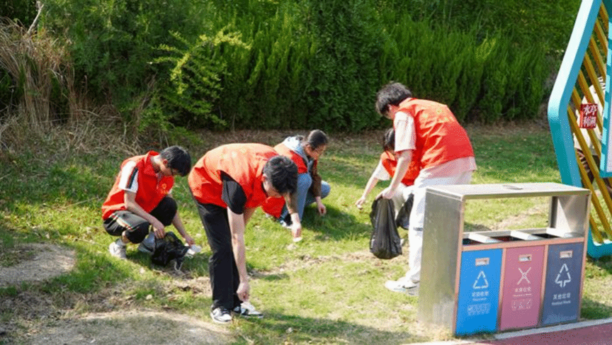 志愿者们在北校区操场集合,实践部部长范智永为大家讲述五一劳动节的历史渊源,大家逐一分享身边感人的劳动故事,既有父母坚守岗位的奉献事迹,也有自身参与志愿服务的难忘经历。在互动环节,大家围绕日常劳动习惯养成、实用劳动技能提升等话题展开热烈讨论,现场氛围活跃。随后志愿者们身着红色马甲,活跃在食堂、校园、操场等地。他们化身“后勤小助手”,穿梭于餐桌间,引导同学分类放置餐盘,主动清理桌面残渣,快速有序地将餐盘运送至清洗区;他们化身“校园清洁工”,清理跑道缝隙、草坪角落的垃圾,重点打扫了绿化带等卫生死角。