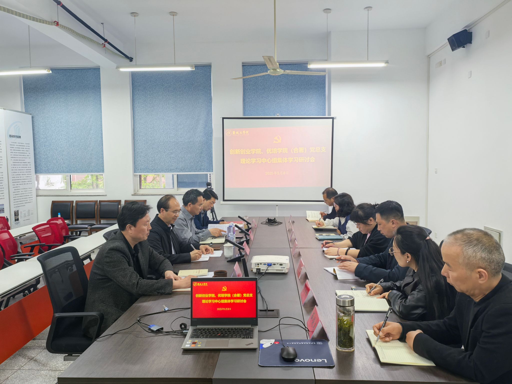 5月8日下午,创新创业学院、优培学院(合署)党总支理论学习中心组在希望大道校区仁和楼A202东会议室召开集体学习研讨会,围绕习近平总书记关于加强党的作风建设的重要论述、《习近平总书记关于党的建设的重要思想概论》、《激励新时代青年在中国式现代化建设中挺膺担当》(习近平,《求是》2025年第9期)等内容开展学习研讨。校党委第二巡学旁听组组长钱长锋、副组长吕立斌旁听指导。会议由学院党总支书记魏巍主持,党总支理论学习中心组全体成员参加。