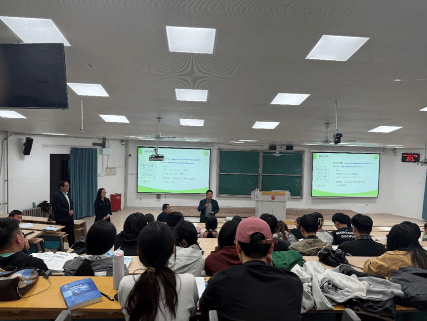 研究生招生宣讲会在邯郸学院科技报告厅举行,邯郸学院生工学院副书记杨明建主持。生工学院党总支书记陈雷、谢全森教授,2024级、2025级本科生参加。