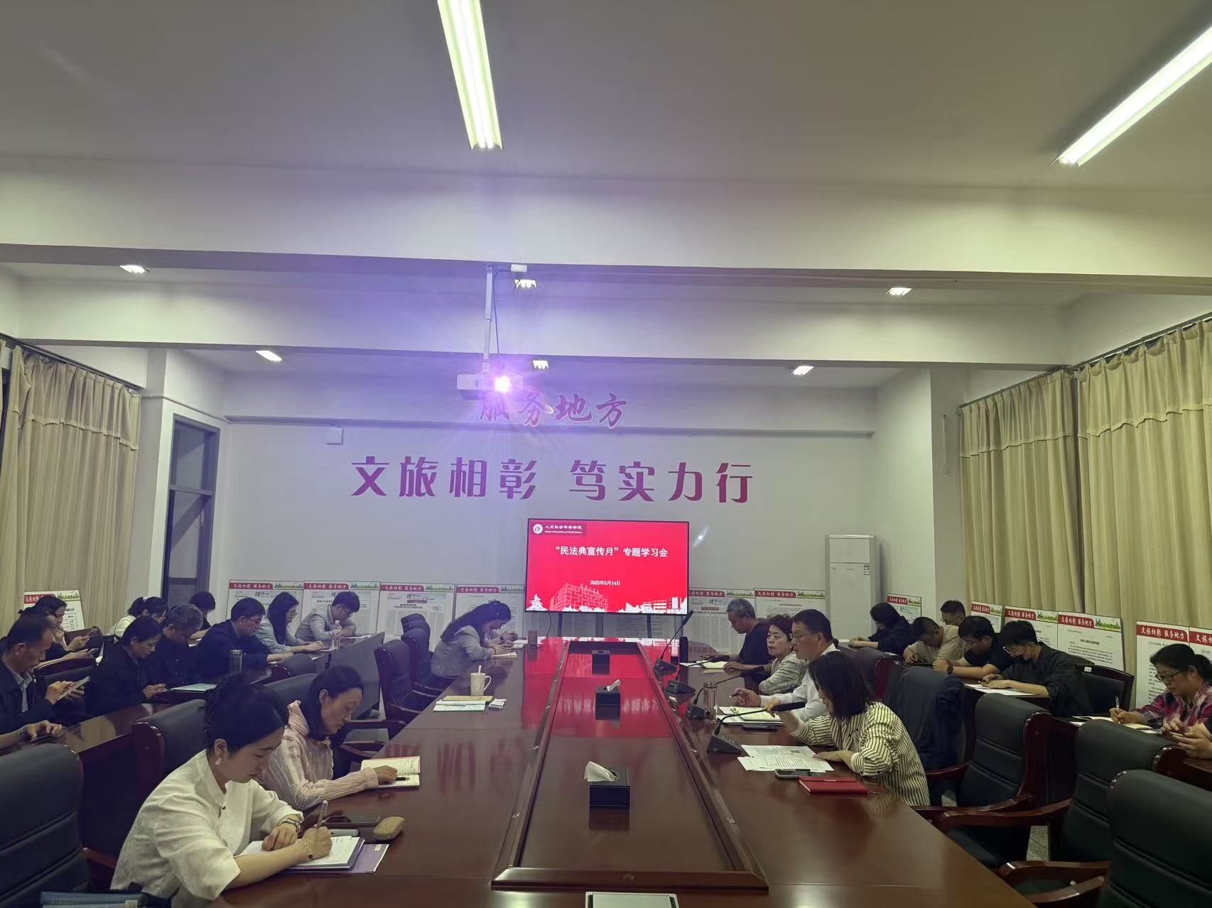 为贯彻落实习近平法治思想,深入学习《民法典》知识,5月14日,人文学院在仁和楼A304开展“民法典宣传月”专题学习会。会议由学院党总支副书记姚爱华主持,学院教职工参加。
