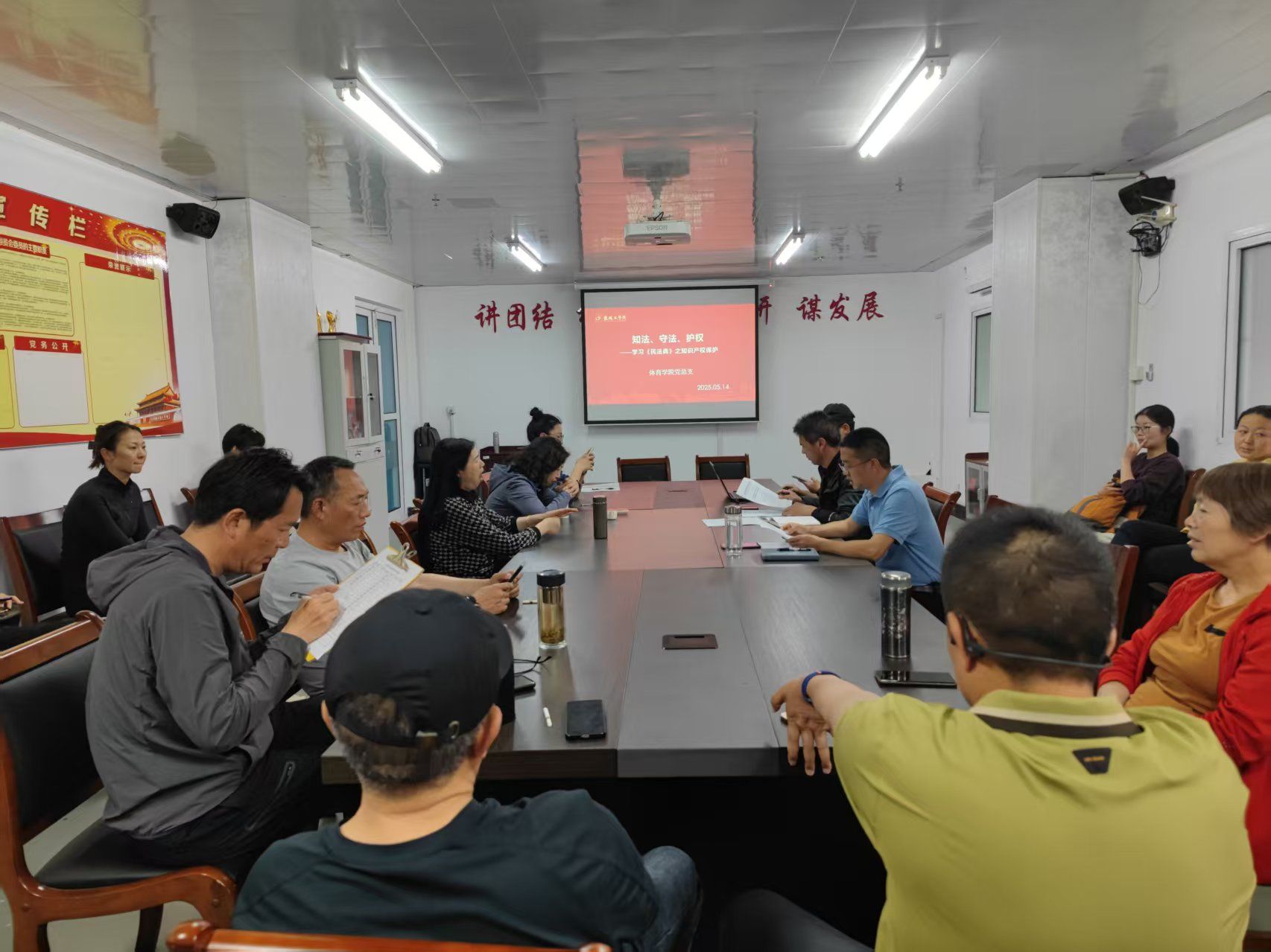 5月14日下午,体育学院在南校区风雨操场会议室开展《民法典》学习宣传活动,学院党总支书记董学兴主持,全体教职工参加。