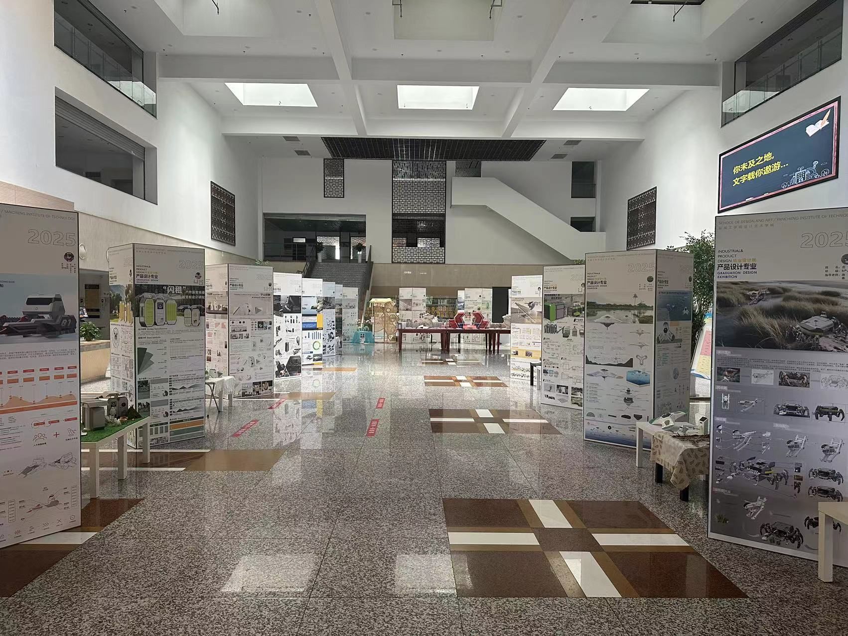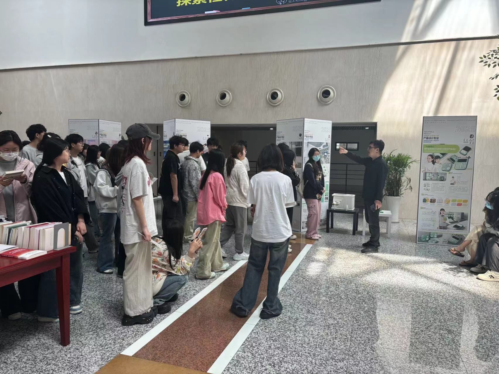 5月12日,贝博设计艺术学院2025届产品设计专业毕业设计展在南校区图书馆二楼中庭开幕。本次展览将持续9天,主题是“制器载道•设计向新”,展出该专业近三十组学生作品。为做好本次展览,图书馆突破传统服务边界,将中庭空间改造为“沉浸式设计实验室”,依托图书馆建筑特色,通过无隔断的通透视野,打造出集作品展示、互动体验、学术交流于一体的复合空间。
