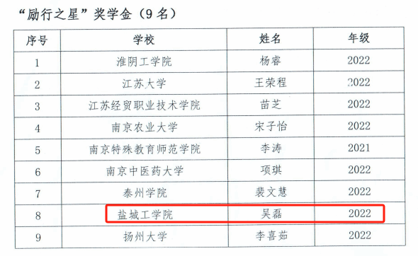 吴雨婷,外国语学院英语专业2021级学生,以综合成绩连续三年位列专业前列、获“国家奖学金”“江苏省三好学生”等12项省级以上荣誉的学术成绩,成为“励学之星”的典范;吴磊,汽车工程学院车辆工程专业2022级学生,以全国大学生船舶能源与动力创新大赛二等奖、第九届全国应用型人才综合技能大赛二等奖等学科竞赛奖项,以及“国家奖学金”“三下乡社会实践先进个人”等6项省级以上荣誉,展现“励行”精神;张杰,纺织服装学院纺织工程专业2022级学生,连续三年获校一等奖学金、发表SCI II区论文的学术成绩,以及“连云港市优秀志愿者”“校优秀学生干部”等身份,诠释“励志”内核。