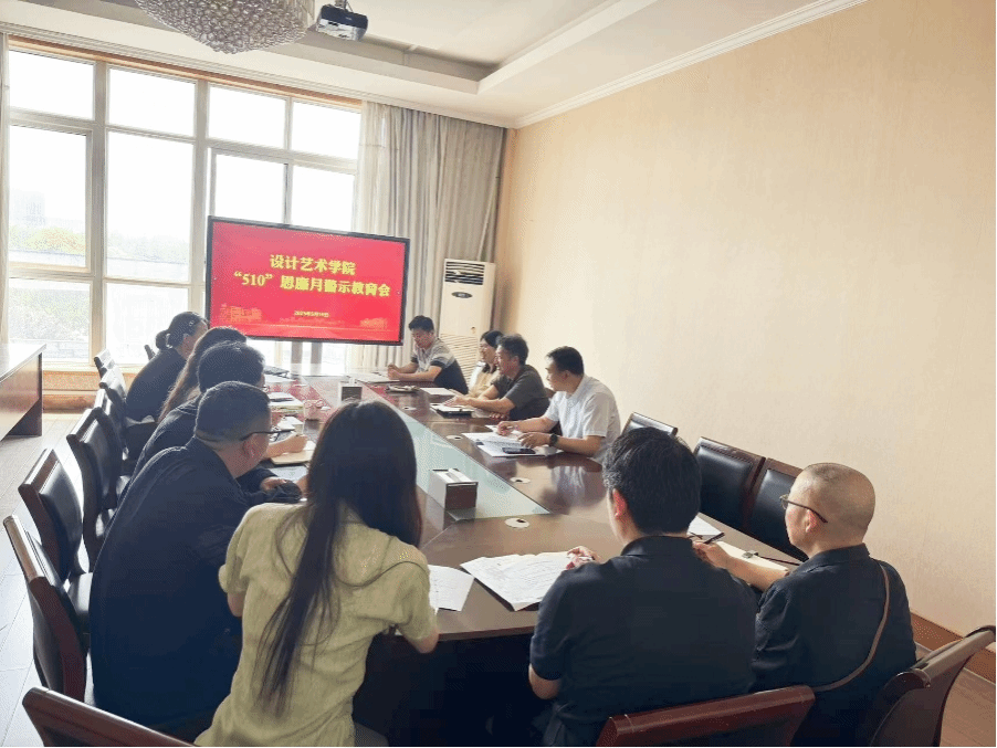 5月19日上午,设计艺术学院在润美楼A311东会议室召开“510”思廉月专题警示教育会。院党总支理论学习中心组全体成员,科级以上干部,专业系、课程组、实验中心负责人参加会议。会议由院党总支书记刘荣主持。