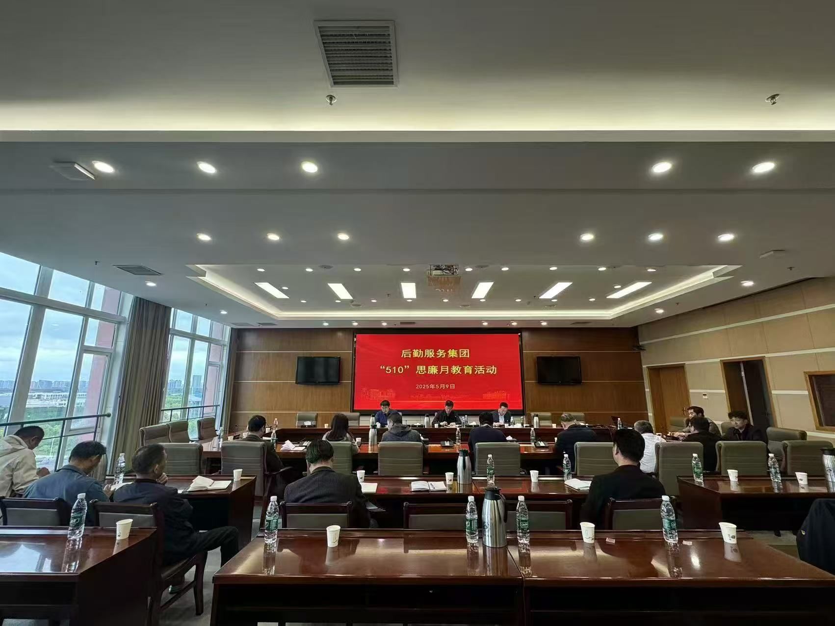 5月9日下午,后勤服务集团党委在南校区行政楼9楼视频会议室开展“510”思廉月警示教育活动,集团党委书记李刚主持,全体党员干部参加。
