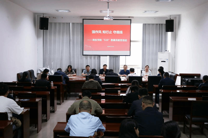 5月15日下午,海生学院党总支在学院大会议室组织开展“510”思廉月警示教育活动。会议由党总支书记高留才主持,学院全体教师参加。