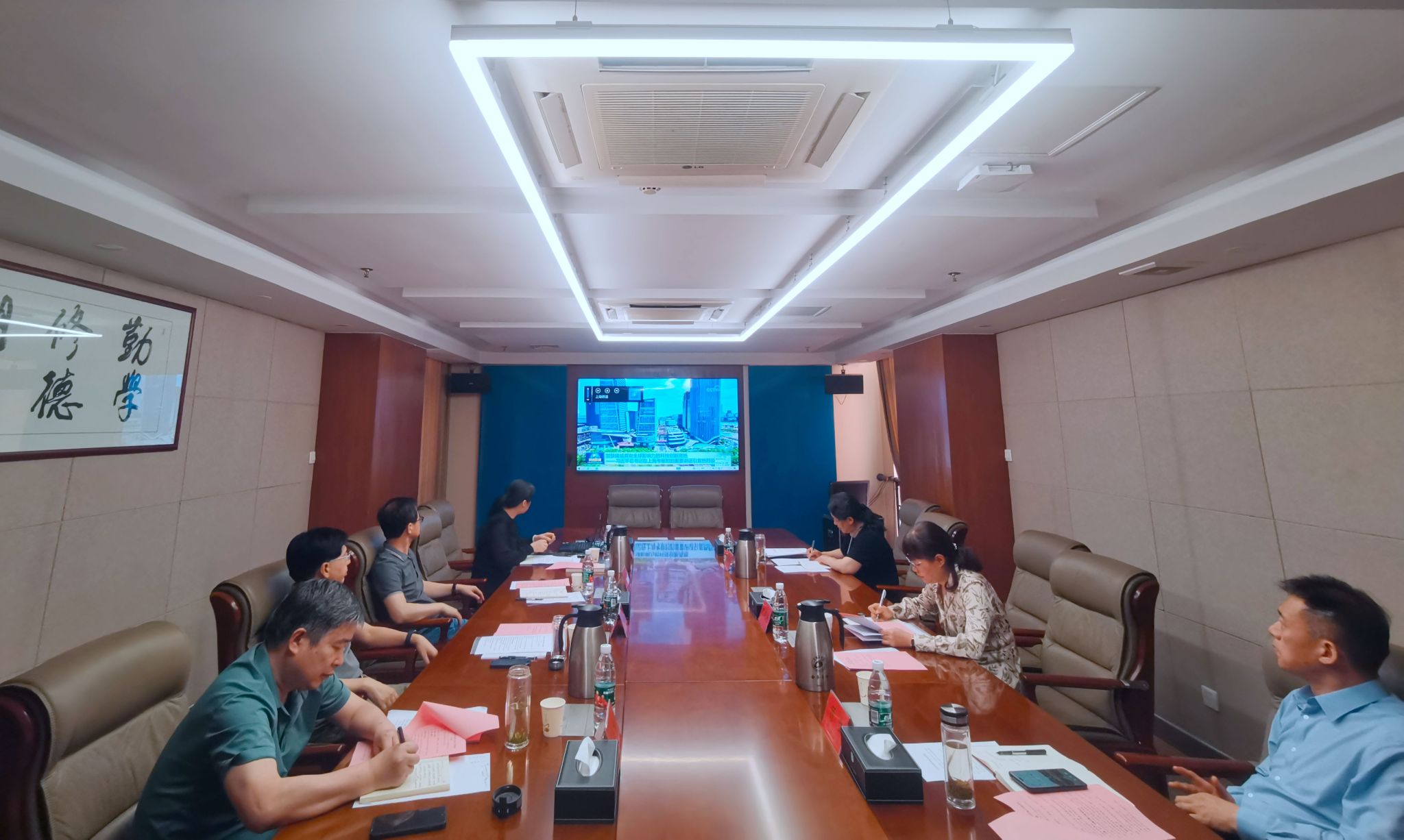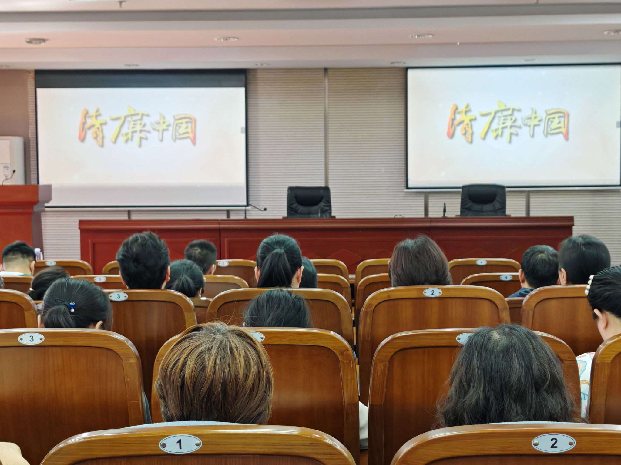 与会人员集体观看了《购物卡》《一篇论文》《家声》等廉政教育视频。