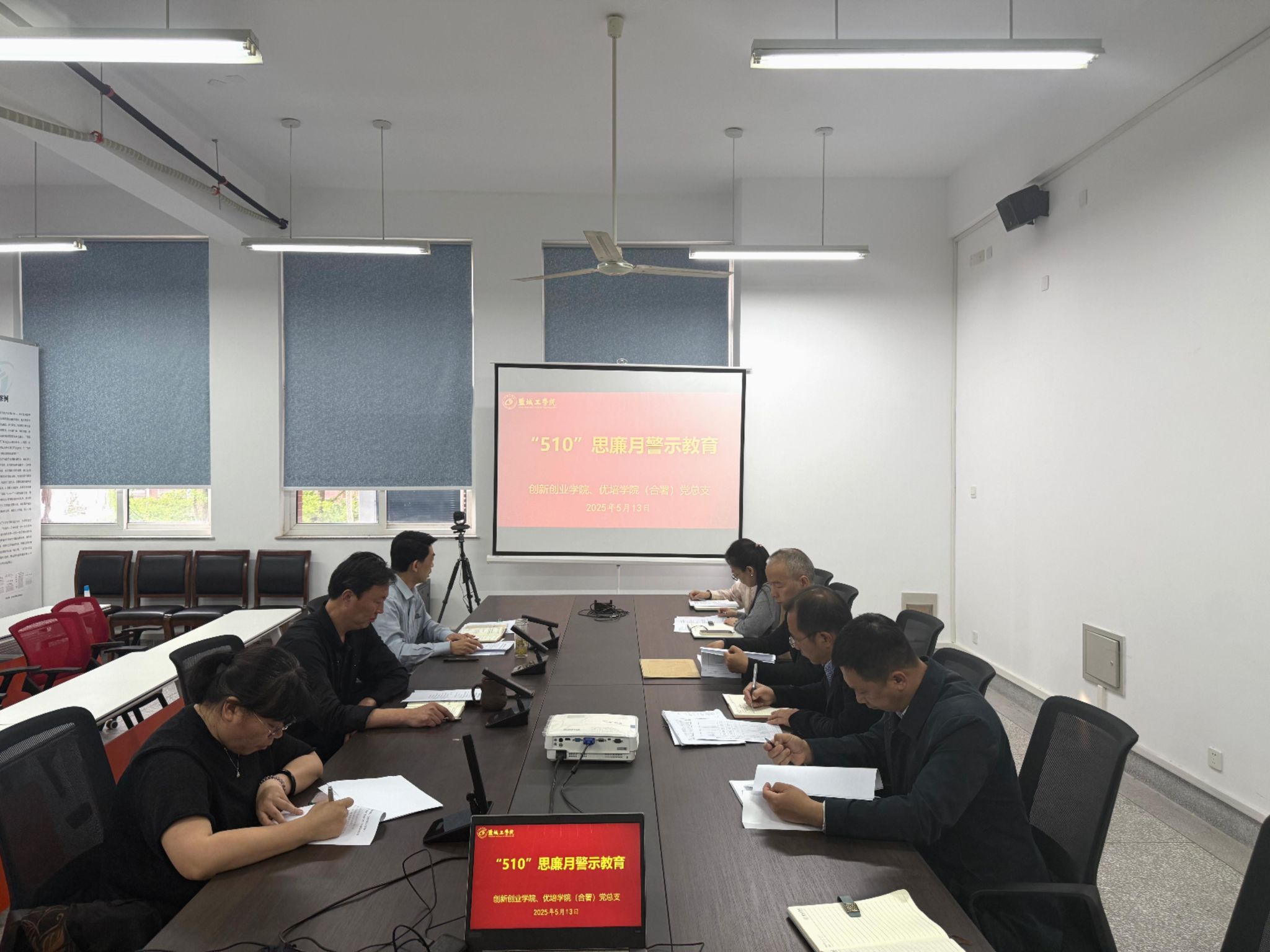 5月9日上午,在大学科技园E1楼二楼会议室,盐龙湖校区管委会党总支组织开展“510”思廉月警示教育活动,党总支副书记、副主任(主持工作)赵云峰主持,全体教职工参加。