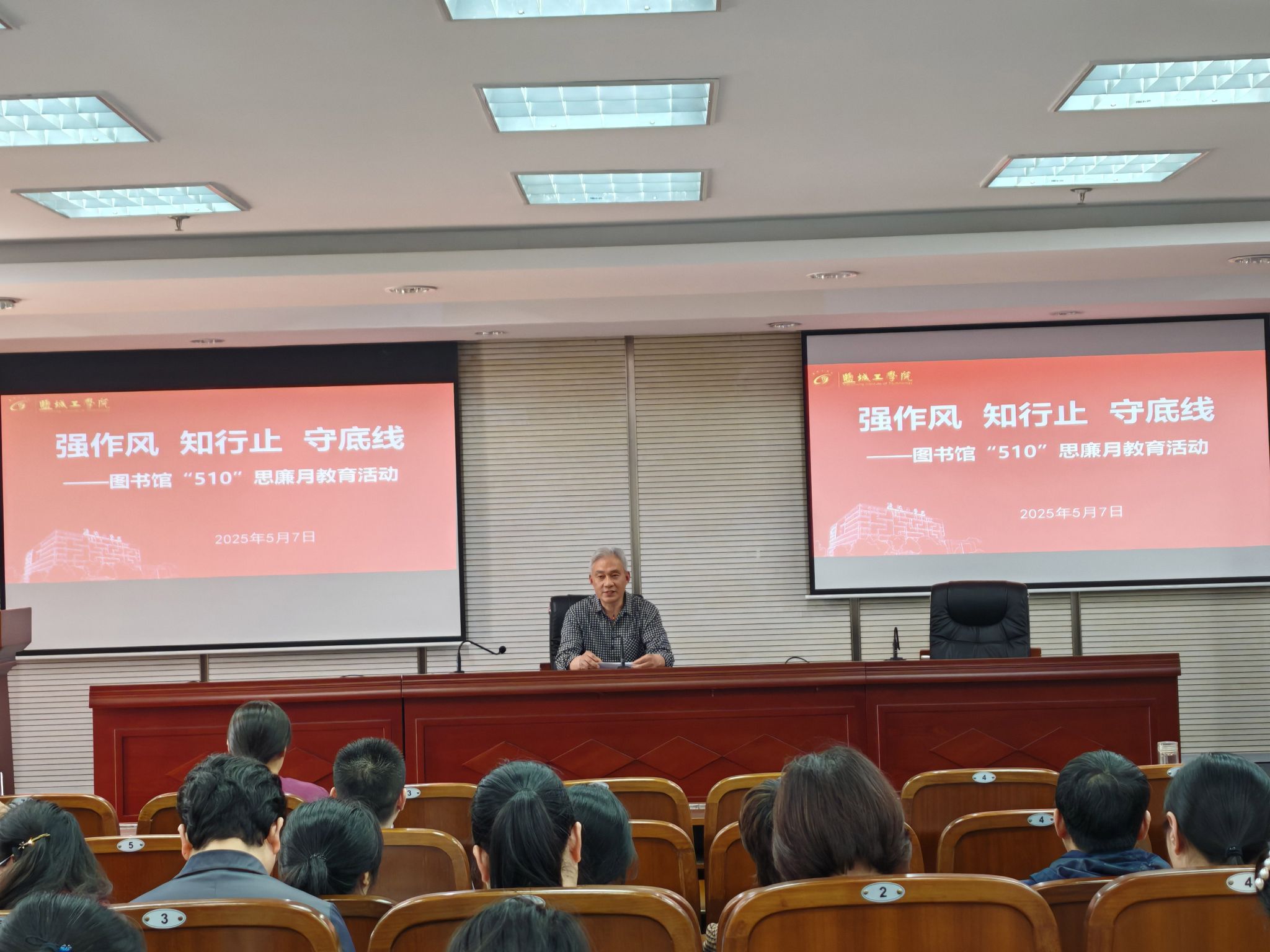 为贯彻落实学校纪委《关于开展“510”思廉月活动的通知》(盐工纪〔2025〕11号)精神,5月21日下午,土木工程学院党委在土木馆报告厅组织开展“510”思廉月警示教育活动,会议由学院党委书记谷伟主持,学院全体党员教师参加。