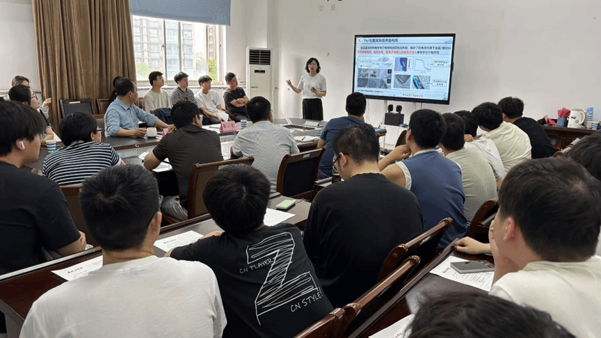 黄小萧教授以“吸波材料中的界面极化损耗机制研究”为题,介绍了电磁波吸收材料的研究背景,重点阐述了界面结构设计对吸波性能的影响、界面极化损耗的理论模型与实验验证方法等关键科学问题的最新研究进展。参会师生就吸波材料的设计、界面极化特征的关键表征技术及优化设计策略等问题与黄小萧教授展开了深入的交流和讨论。
