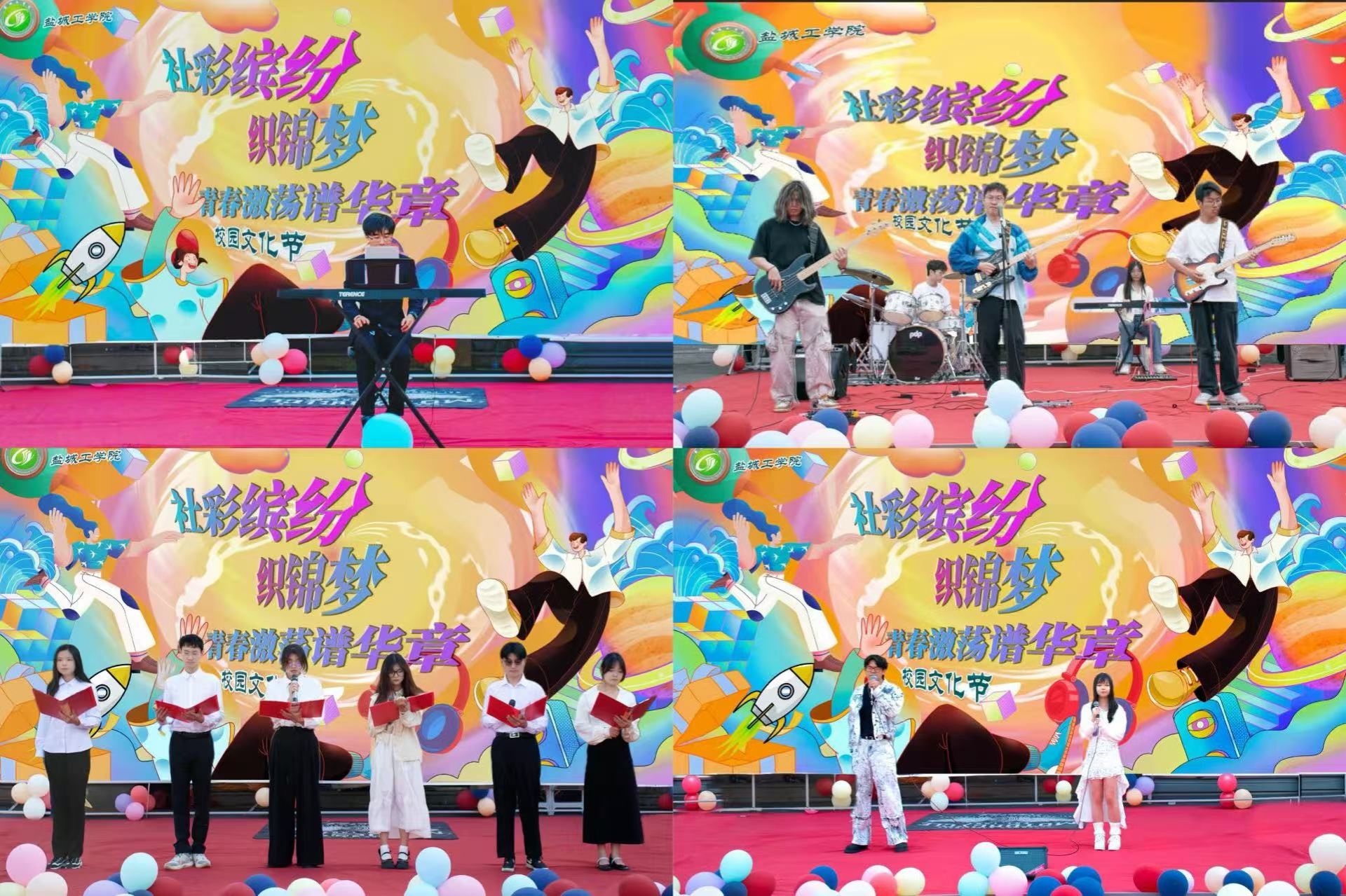 活动伊始,文艺展示环节在激昂热烈的氛围中拉开帷幕。校大学生艺术团带来的歌曲串烧,以青春洋溢的歌声瞬间点燃全场热情,将观众带入欢快的氛围之中;读者协会的成员们深情朗诵,用富有感染力的声音带领大家穿梭于诗意世界,感受文字的魅力;今日青年吉他社的摇滚乐队以震撼的节奏、激情的演唱,展现出青年学子的不羁与活力;JDC舞社带来的动感舞蹈,舞步灵动、热情奔放,瞬间点燃了现场气氛;方圆话剧社的诙谐话剧,凭借精彩的剧本和社员们精湛的演技,引得观众笑声不断;融媒体中心带来的原创歌曲,以新颖的旋律和真挚的情感,唱出了当代大学生的心声。从音乐到舞蹈,从话剧到原创歌曲,多种艺术形式轮番登场,充分展现了学生社团丰富的文化艺术素养和朝气蓬勃的精神风貌。