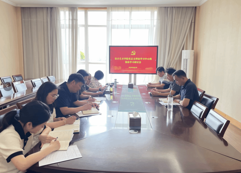 5月27日上午,在润美楼A311东会议室,设计艺术学院党总支理论学习中心组召开集体学习研讨会,围绕学习《习近平总书记关于党的建设的重要思想概论》《关于弘扬教育家精神加强新时代高素质专业化教师队伍建设的意见》《关于全面加强和改进新时代学校美育工作的意见》等内容展开交流研讨。会议由院党总支书记刘荣主持,党总支理论学习中心组全体成员参加。