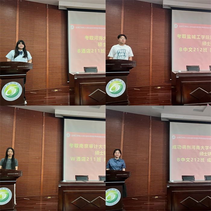会上,考取河海大学社会学专业硕士研究生、B酒店211班夏盈盈同学从择校、初试、复试这三个角度,提醒同学们要脚踏实地,厚积薄发并祝愿2022级考研学子金榜题名,高分上岸。考取bb贝博艾弗森官方网站国际中文教育专业硕士研究生、B中文212班吴康纯同学从个人情况及报考本校研究生优势两个方面展开讲述,鼓励学弟学妹们“相信自己的实力,相信母校的培养——选择本校,就是选择高效成功!”。考取南京审计大学公共管理专业硕士研究生、W酒店211班郑项悦同学结合自身从专科到本科,再从本科到研究生的经历,鼓励学弟、学妹们“把书背烂,把题刷烂,克服苦难,一定上岸!”。成功调剂并考取河南大学中国语言文学专业硕士研究生、B中文212班成宜吉同学从调剂原因、调剂择校、调剂复试三个方面向大家进行考研调剂的讲解,并鼓励大家不要轻言放弃,坚持就是胜利。