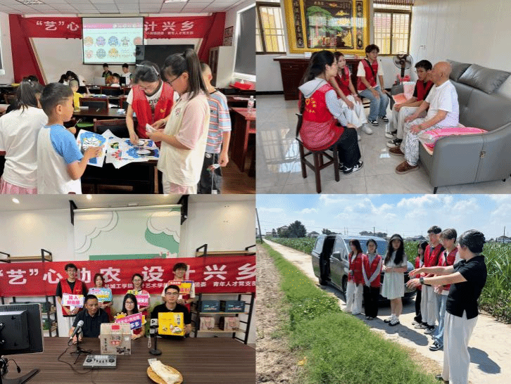 “‘艺’心助农 设计兴乡”实践团响应国家乡村振兴战略号召,联合盐城市大丰区小海镇人民政府开展大学生暑期社会实践活动。在小海镇,志愿者们聚焦乡村振兴核心课题,通过实地调研、深度访谈、文化体验、志愿服务与专业创作相结合的方式,深入小海镇的田间地头与产业一线,充分发挥专业优势开展农产品包装设计,打造既符合产品特性、又能彰显地方文化特色的包装方案;架起直播设备,在“大丰区小海镇书记直播间”“杨树村供销E站”平台热情推介特色农产品,助力小海镇农产品提升附加值与市场竞争力。志愿者们还以青春之姿,开展了形式多样的志愿服务活动——在暑托班,以京剧脸谱为主题开展非遗课堂;在长者食堂,贴心为行动不便的老人送餐到桌;在便民服务中心,化身网格员体验基层工作,深度融入村干部工作日常,倾听群众真实诉求,为提升民生服务水平注入新动能。